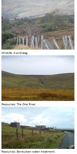 · Resources: The Benbulben water treatment plant filters our drinking water. The Benbulben bog has been used for hundreds of years to harvest turf.